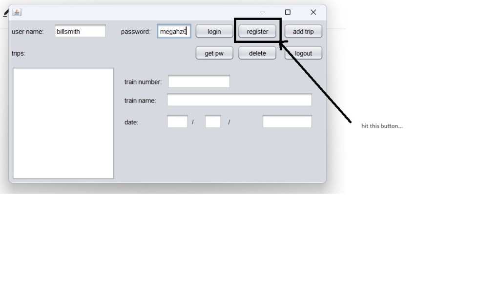 - Register: Enter a username where it says username and a password where it says password. Just be sure to remember it. Hit the register button like so: